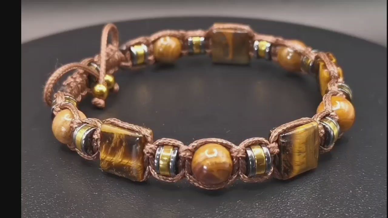 Ein robustes, maskulines Shamballa-Armband aus Tigerauge-, Jaspis- und Hämatitperlen an einer strapazierfähigen, braunen Kordel. Jeder Stein wurde aufgrund seiner satten, erdigen Farbtöne und seines natürlichen Charakters ausgewählt. So entsteht ein harmonisches Accessoire, das sowohl zu lässigen als auch zu eleganten Outfits passt. Angenehm zu tragen, verstellbar und langlebig – dieses Armband verleiht Ihrem Alltagslook eine dezente, aber dennoch unverwechselbare Note. Ein ideales Geschenk für Männer, die natürliche Materialien und hochwertige Handwerkskunst schätzen.