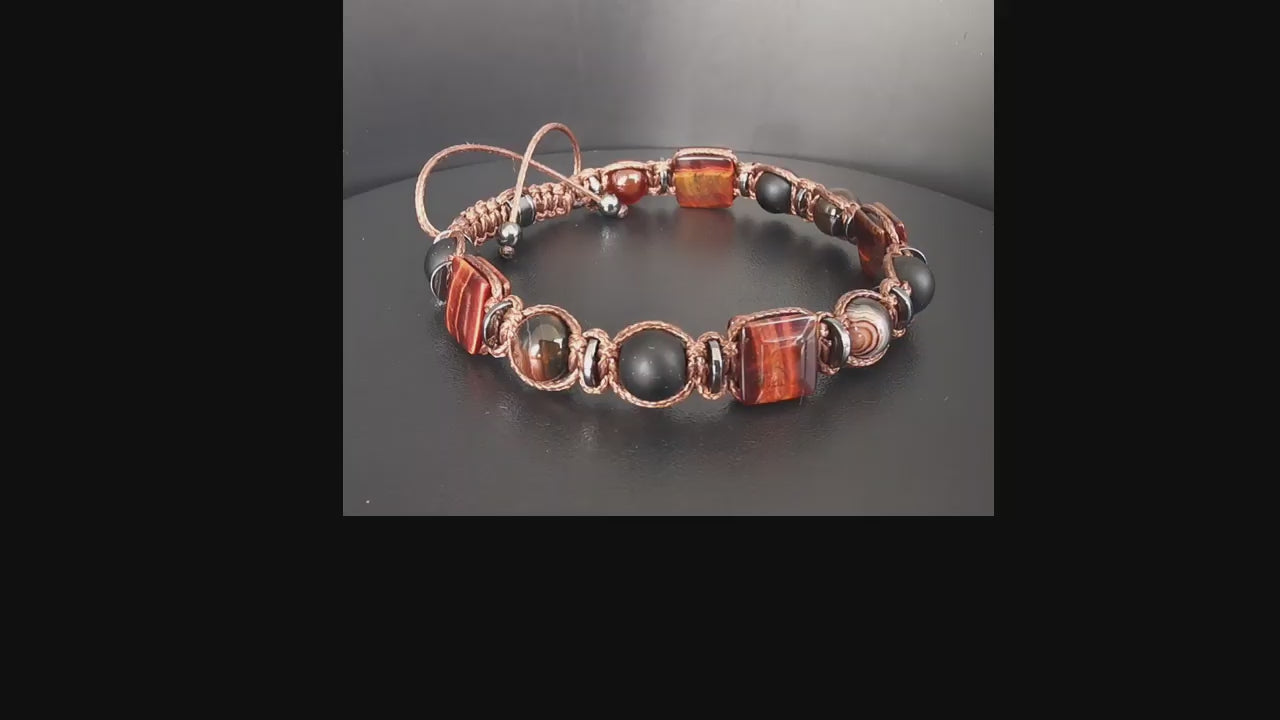 Elaborada con intención, esta pulsera une la energía estabilizadora del ágata negra, el fuego motivador del ágata roja, la claridad protectora del ojo de tigre y la fuerza estabilizadora de la hematita. Juntas, estas piedras forman un poderoso escudo energético que fomenta la confianza, la concentración y la resiliencia emocional. Tejida en un cálido cordón marrón, es una compañera diaria para el equilibrio y el poder personal.