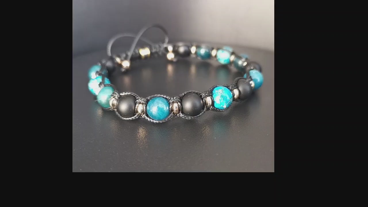 Like waves against dark stone, this bracelet blends the deep blue of apatite with the grounding shades of jasper, the mystery of black agate, and the strength of hematite. A story of earth and water, of clarity and resilience — a quiet song carried on your wrist.