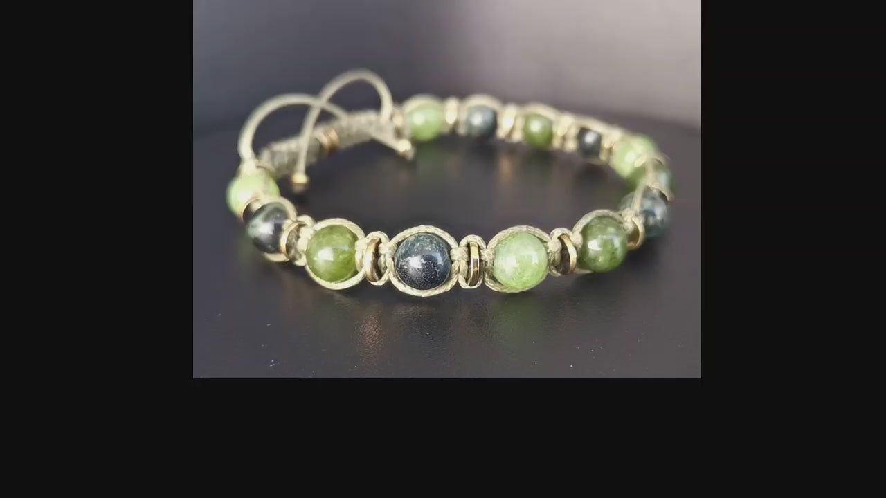 Like moss-covered stone touched by sunlight, this bracelet blends the deep green of kambaba jasper with the fresh glow of peridot, the living energy of moss agate, and the grounding weight of hematite. A quiet song of earth and renewal, carried gracefully on your wrist.
