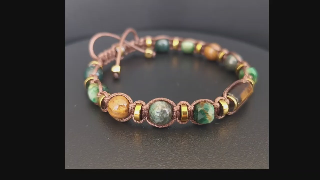 Golden light flickers in Tiger Eye, green whispers of forest breathe through Moss Agate, and Jasper holds the earth’s calm pulse.