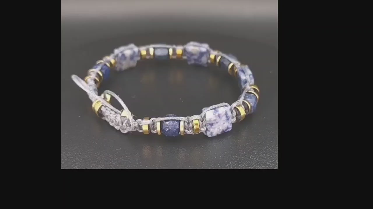 A bracelet shaped from the colours of midnight seas and ancient skies. Sodalite glows like quiet tides, Lapis Lazuli carries the mystery of stars, and gold Hematite adds warm sparks of strength. Together they form a calm and steady rhythm—an elegant reminder of clarity, depth, and inner poise. A poetic piece for those drawn to the serenity of blue stone worlds.
